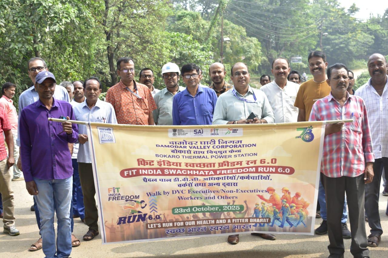 बेरमो/ फिट इंडिया फ्रीडम रन 6.0 के तहत गुरुवार को बोकारो थर्मल के अधिकारियों और कर्मचारियों ने पैदल यात्रा पूरे बीटीपीएस कॉलोनी परिसीमन में की।