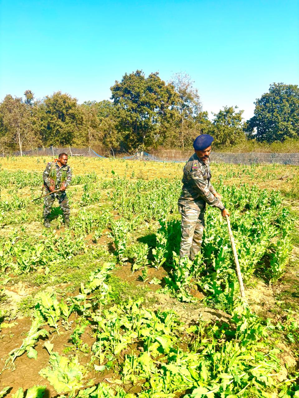 नौडीहा बाजार पुलिस ने 5 एकड़ मे लगे अफीम पोस्ता की खेती क़ो किया नष्ट