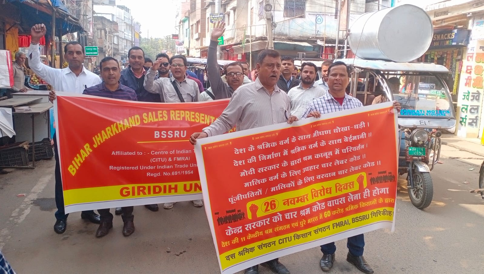 विरोध में केंद्र सरकार की जैम कर नारे बाज़ी कर ये 4-श्रम कोड का प्रतिलिपि को जलाया और मांग किया, अबिलम्ब इस काला कानून को सरकार वापस ले। गिरिडीह जिला का बी एस एस आर यूनियन के सैकड़ों सदश्य गण डॉक्टर लेन से एक रैली निकल कर जिला श्रम आयुक्त को ज्ञापन सौंपा। जो प्रधान मंत्री को लिखा गया। मांग किया गया 1) इस 4-कोड को तुरंत वापस लिया जाये , 2) एस पि इ एक्ट 1976 को पुनर्बहाली किया जाये, और 3) SPE Act (service & Conditions) 1976 के अनुसार कानूनी काम करने के नियम बनाना I