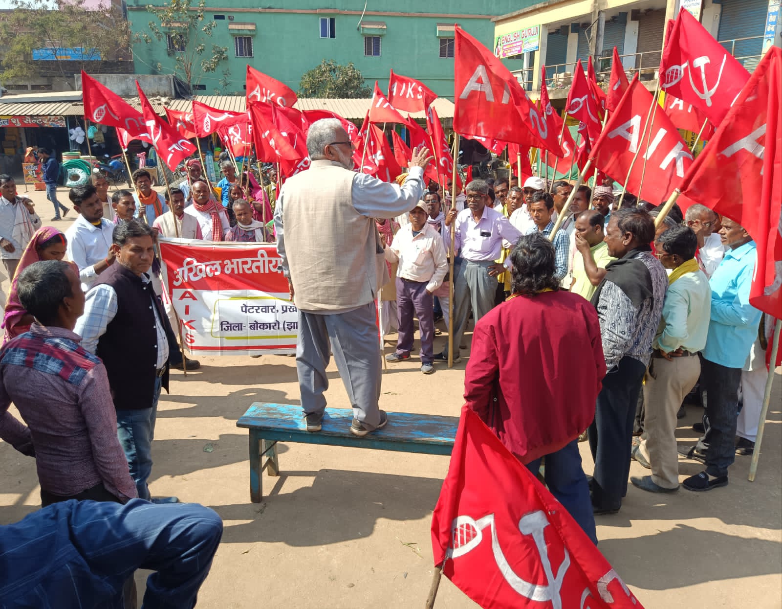 तेनुघाट: ट्रेड यूनियनों एवं किसान संगठनों का एक दिवसीय राष्ट्रव्यापी हड़ताल के अंतर्गत प्लस टू हाई स्कूल, पेटरवार के मैदान से अखिल भारतीय किसान सभा का जुलूस निकाला गया। जुलूस का नेतृत्व किसान सभा के प्रदेश उपाध्यक्ष पंचानन महतो, चुंबन महतो, दिवाकर महतो, अजीत कुमार, महेश रजवार, देवानंद प्रजापति, इत्यादि ने किया। विभिन्न जगहों से गुजरते हुए पेटरवार बाजार टांड में जुलूस सभा में बदल गया।