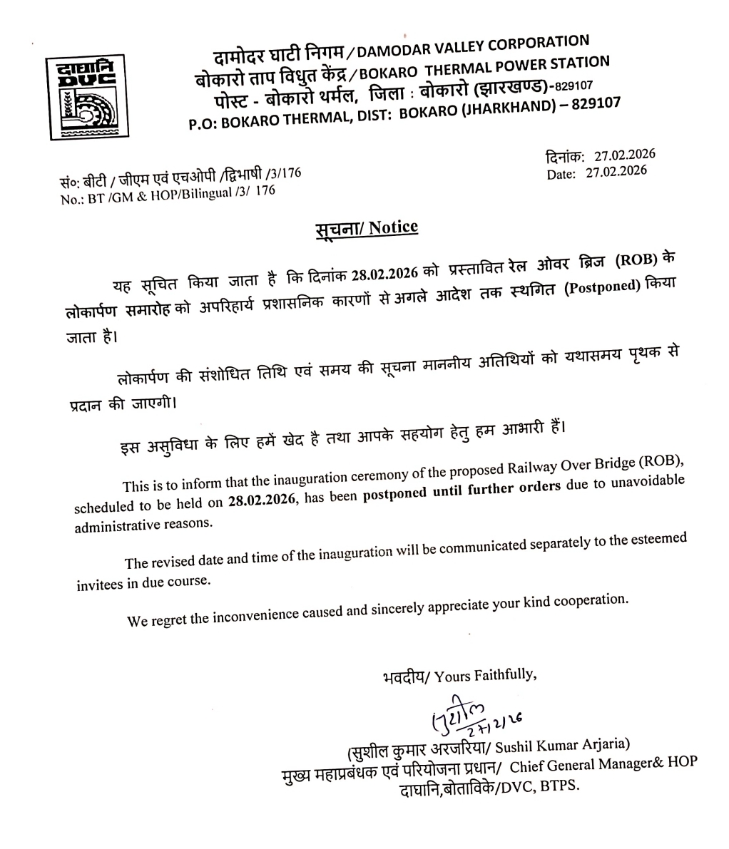 बेरमो /बीटीपीएस क्षेत्र में निर्माणाधीन बहुप्रतीक्षित फ्लाईओवर का उद्घाटन, जो 28 फरवरी को प्रस्तावित था, एक बार फिर स्थगित कर दिया गया है। इससे पूर्व 26 जनवरी को भी उद्घाटन की घोषणा की गई थी, किंतु वह कार्यक्रम भी आयोजित नहीं हो सका। लगातार दूसरी बार निर्धारित तिथि टलने से प्रशासनिक समन्वय और निर्णय प्रक्रिया पर प्रश्न उठने लगे हैं।