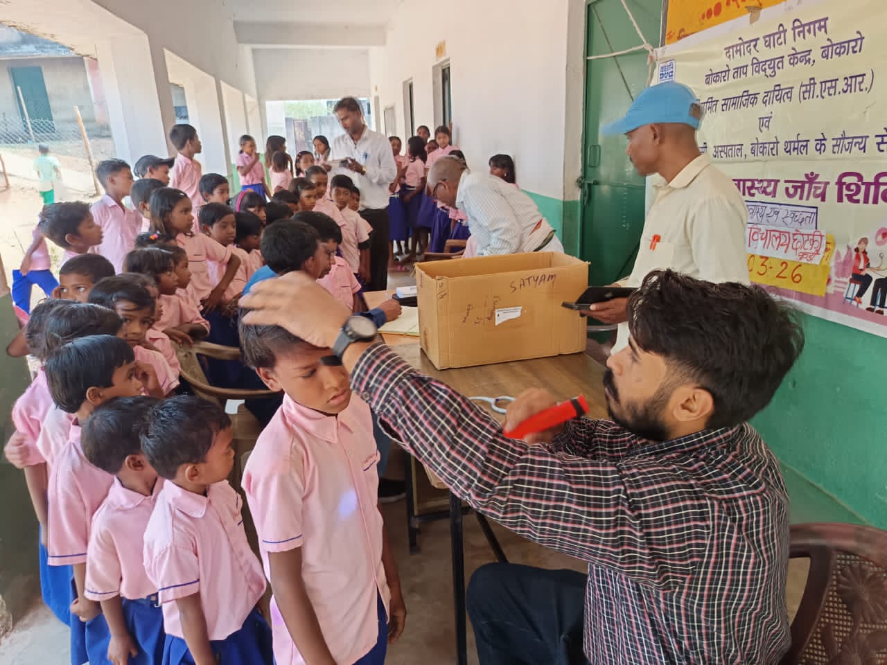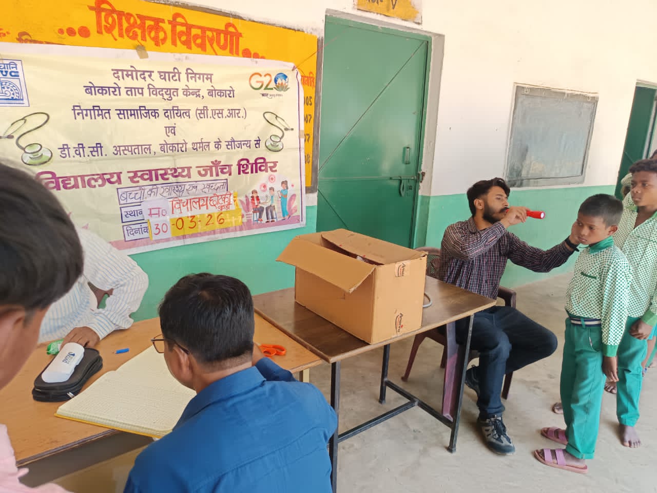 बेरमो: नावाडीह प्रखंड के ऊपर घाट स्थित छोटकी कुड़ी उत्क्रमित मध्य विद्यालय में सोमवार को बच्चों के स्वास्थ्य जांच शिविर का आयोजन डीवीसी बोकारो थर्मल( सी एस आर )एवं डीवीसी अस्पताल के संयुक्त तत्वाधान में किया गया उद्घाटन डॉक्टर एस साहा ने किया शिविर में 96 बच्चों के स्वास्थ्य की जांच की गई जरूरतमंद बच्चों के बीच निशुल्क दावों का वितरण किया गया,