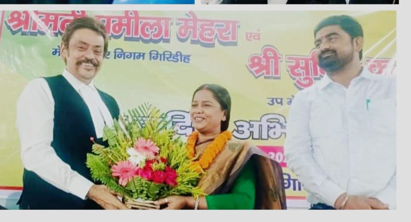 गिरिडीह ज़िला अधिवक्ता संघ ने नवनिर्वाचित महापौर प्रमिला मेहरा और उपमहापौर सुमित कुमार को किया सम्मानित ।