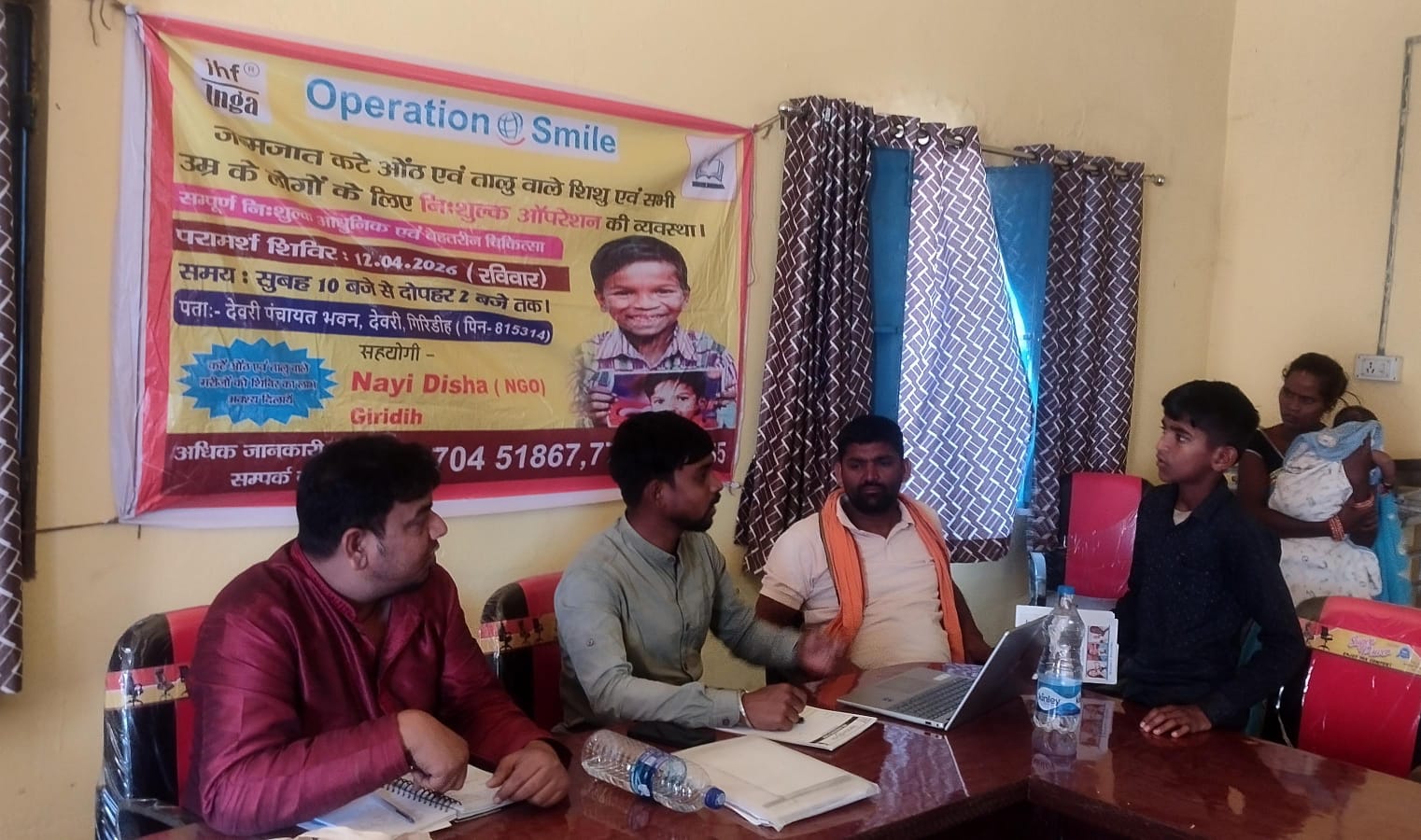 गिरिडीह जिले के देवरी प्रखंड अंतर्गत घोसे पंचायत भवन में एक स्वास्थ्य परामर्श शिविर का आयोजन किया गया। यह शिविर नई दिशा संस्था एवं ऑपरेशन स्माइल के संयुक्त तत्वावधान में आयोजित किया गया, जिसका उद्देश्य जन्मजात कटे होंठ एवं तालू (क्लेफ्ट लिप और क्लेफ्ट पैलेट) से पीड़ित शिशुओं, बच्चों तथा सभी आयु वर्ग के लोगों को निशुल्क उपचार की सुविधा उपलब्ध कराना है।